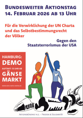 Auf dieser Homepage sind sowohl Informationen zu den Aktivitäten des Bündnisses „Kein NATO-Hafen“ wie die Kundgebung am 25.09.25 und die Demonstration am 27.09.25 sowie zu denen weiterer Friedensaktivisten zu finden. Es gibt den Aufruf zur Demonstration auf deutsch, auf englisch und Farsi sowie die Plakat-Motive und Sharepics zum Download.