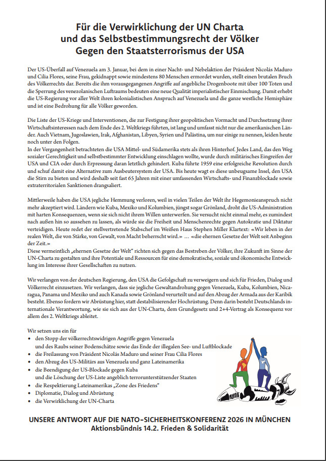 Für die Verwirklichung der UN-Charta und das Selbstbestimmungsrecht der Völker –